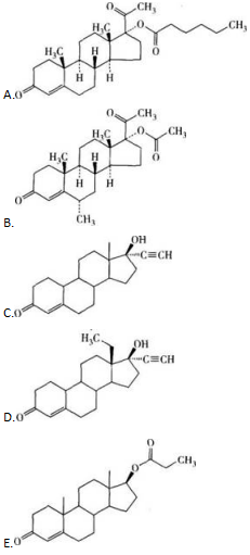 最佳选择题 为黄体酮的17α-己酰氧基物,是脂溶性强的前药,肌内注射后缓慢释放,药效持续可达1个月,临床作长效避孕药的是