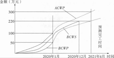 某工程的偏差分析曲线图如下图所示(图中时间均表示月底),从图中可知,该工程预测完工时间与计划完工的时间间隔△H和预测的该