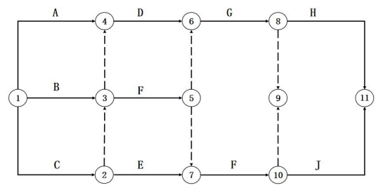 某双代号网络计划如下图所示,图中存在的绘图错误有( )。