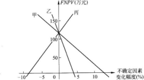 现对某技术方案进行单因素敏感性分析,选择财务净现值作为分析对象,如下图所示,甲、乙、丙三个不确定因素按敏感性由大到小的顺
