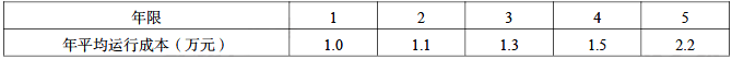 某新设备购置的实际价值为8万元,不考虑净残值,年平均运行成本如下表所示,则以下说法正确的是()。