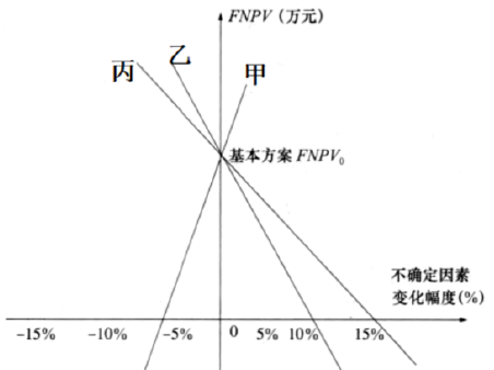 现对某技术方案进行单因素敏感性分析,选择净现值作为分析对象,如下图所示,甲、乙、丙三个不确定因素按敏感性由大到小的顺序排