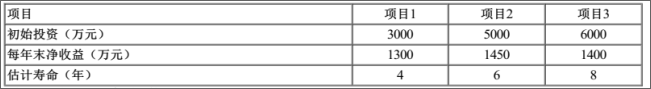 某企业可提供选择的项目有三个,项目1和项目2是互斥关系,项目3与项目1、2为独立关系。各项目有关数据如下表,基准收益率为