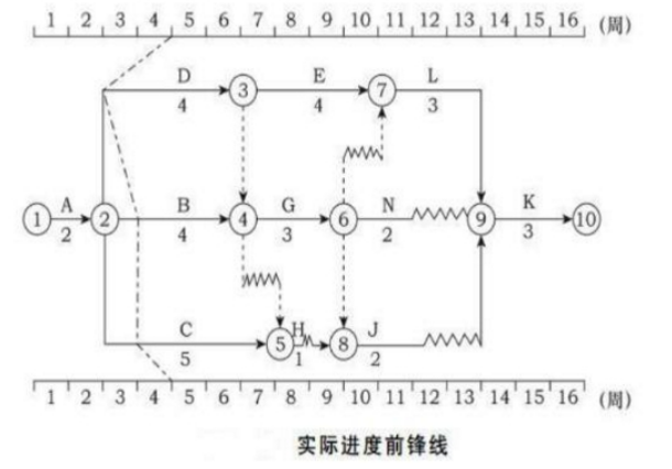 3.(1)实际进度前锋线如下: