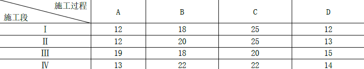A、B、C、D 四个施工过程之间的流水步距计算如下: