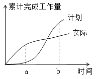 某工作实施过程中的S曲线如下图所示,图中a和b两点的进度偏差状态是( )。