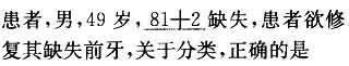 D 为Kennedy第四类牙列缺损