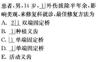 A 牙冠缺损至颈缘 B 牙槽骨内残根,经冠延长术后可暴露出断面 C 前牙斜折至牙槽嵴下,牙根尚有足够长度 D 畸形牙直接预备,固位形不良 E 牙槽骨以下的斜形根折,伴牙根松动