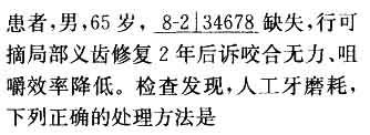 B 若人工牙广泛性磨耗,可用自凝塑料在口内直接加高恢复正常的咬合关系