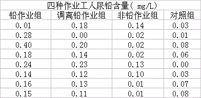 为了研究铅作业与工人尿铅含量的关系,随机抽查四种作业工人的尿铅含量结果如下表。欲了解四种作业工人尿铅含量是否有差别,据此