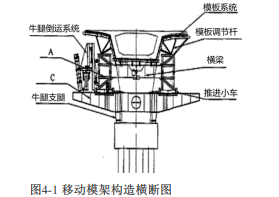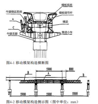 A是主梁、B是导梁(或前后鼻梁)、C是牛腿支承托架。