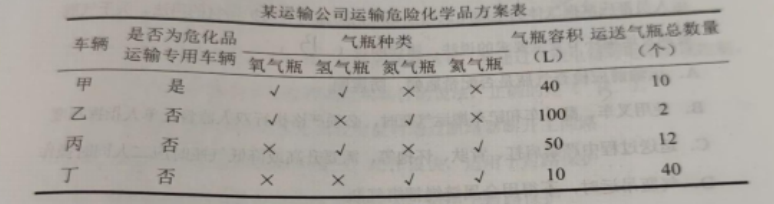 某工业气体公司委托有资质的运输公司承担运送一批压缩气瓶业务,该批气瓶均为15MPa的无缝气瓶。下表是该运输公司拟定的混装