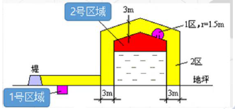 固定式储罐是典型的存在可燃性气体的密闭式空间,下图中标记的蓝色区域固定式储罐区域划分正确的是( )。