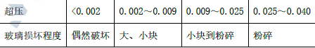 已知凝聚相炸药在空气中爆炸产生的冲击波超压峰值可根据经验公式(Mills 公式)估算,即△P=0.108/R-0.114/R2+1.772/R3。其中,△P 为冲击波超压峰值,MPa;R 为无量纲比距离,R=d/WTNT(1/3);d 为观测点到爆心的距离,m;WTNT 为药量,kg。冲击波超压导致玻璃破坏的准则见下表所示。若给定WTNT 为8.0kg,d 为10.0m 处的玻璃门窗在炸药爆炸后,玻璃损坏程度为( )。