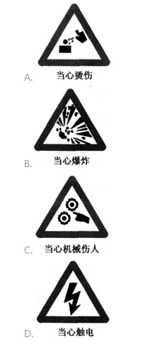 单选题 某食品工厂前处理车间的纯蒸汽制备装置由蒸汽包、蒸汽管道、纯水泵、配电柜等组成,在安全生产标准化评审时,配送员现场审查发现,纯蒸汽制备装置现场设置了下列警示标志。根据该场所的风险评估结果,这些警示标志中,设置错误的是( )。