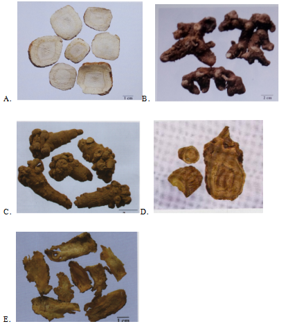 配伍选择题 下图中,图示饮片是大黄的是( )