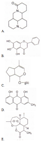 A 青蒿 B 穿心莲 C 黄柏 D 广藿香 E 麻黄