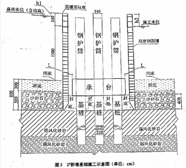 5.h1围堰顶面高程要高出施工期间最高水位(含浪高)0.5~0.7米。