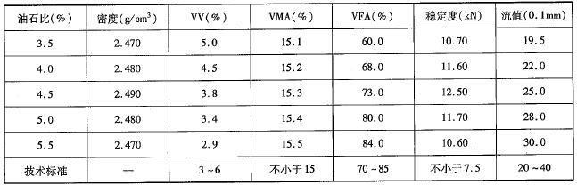 不定项选择题 某沥青混合料物理力学指标测定结果见下表,请回答以下问题。(1)该沥青混合料的最佳沥青用量OAC1为( )。