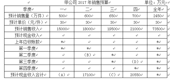 资料一:甲公司预计每季度销售收入中,有70%在本季度收到现金,30%于下一季度收到现金,不存在坏账。2016年末应收账款余额为6000万元。假设不考虑增值税及其影响。