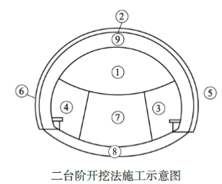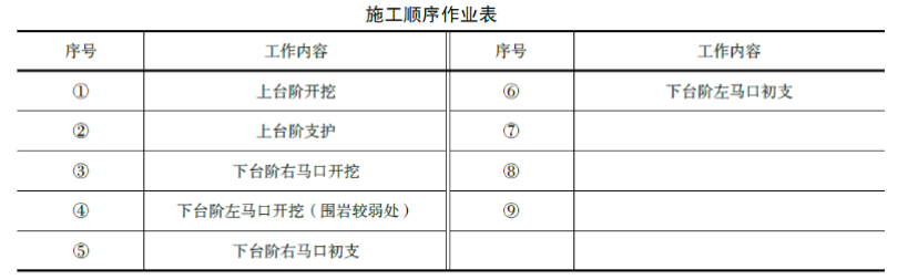 <3>.表列⑦项为核心土开挖,⑧项为施工仰拱,⑨项为施作二次衬砌。