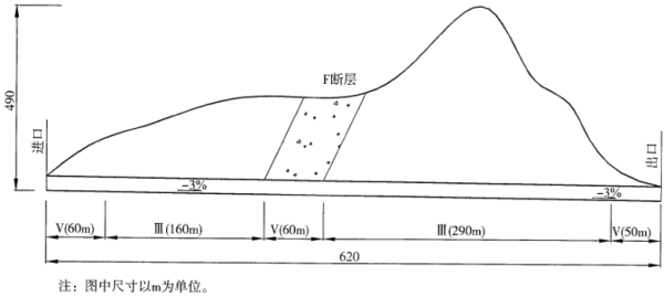 施工场地布置在出口,由出口向进口掘进较为合理,因为工作面设在出口有利于顺坡排水。
