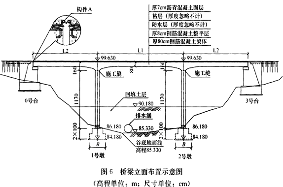 4.采用杂土回填,回填土压实度不满足设计要求,造成支架基础过大沉降最大回填厚度90.18-85.33=4.85米,采用一次性回填并碾压,支架基础下部土体无法碾压密实,基础后续沉降过大。