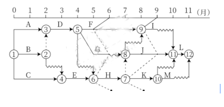 E 工作K在第9月底检查时拖后2个月,影响1个月工期