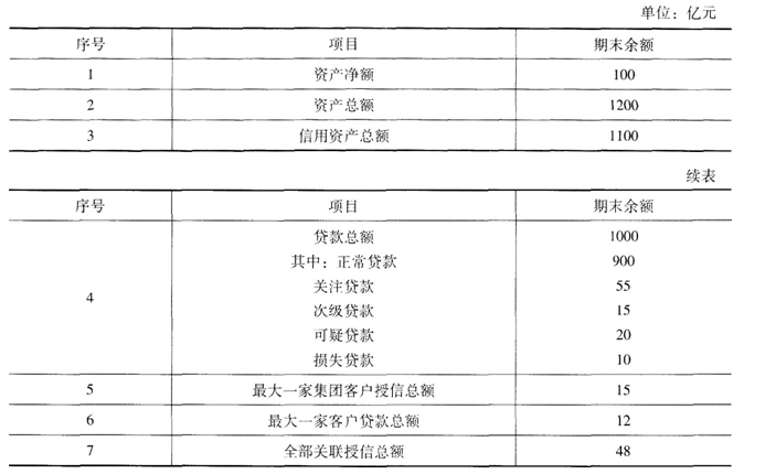 不定项选择题 下表为我国某商业银行201X年度资本、资产相关数据。 根据以上资料,回答下列问题: 该银行的全部关联授信与