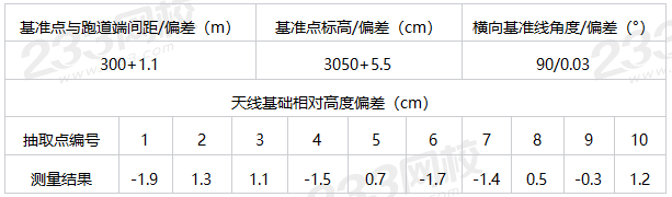 (1)基准点与跑道端间距/偏差1.1m不满足规范要求;