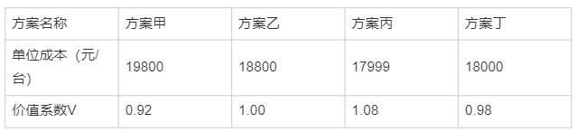某工厂技术研发部门就拟生产的沥青摊铺机功能,成本拟定了四个方案,经评估计算其价值系数V如下表所示,那么,无需改造的方案是