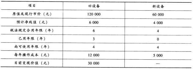 案例分析题 共用题干 某建筑安装公司有一台购于三年前的施工设备,现在考虑是否需要更新(即购买新设备,卖掉旧设备)。原有旧