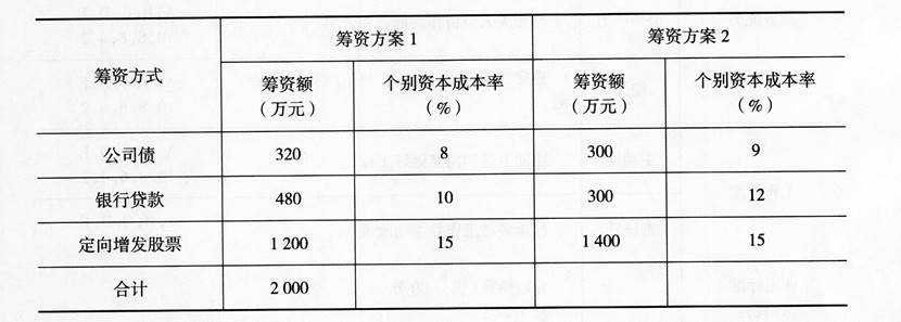 不定项选择题 某食品企业为了扩大生产规模,提高市场占有率,经过市场考察决定收购某同类企业。为了完成并购,需要融资2000万元,现在有两种备选筹资方案,具体情况见下表。