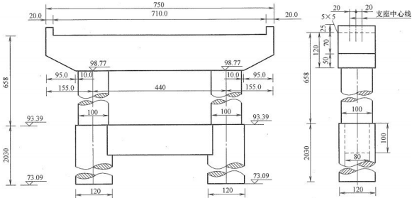 A 盖梁全长750cm,高120cm,宽度120cm