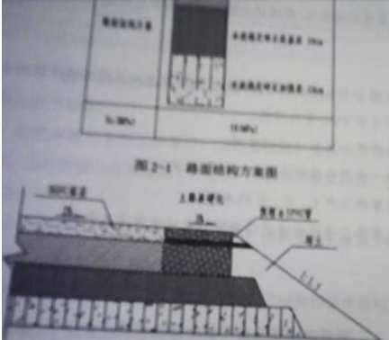 某施工单位承建了一项二级公路工程,起颀里程为K0+000~K20+10.52,包括路基工程、路面工程及交通安全设施工程等,该地区雨季降雨比较集中,路面面层采用OOFC沥青混凝土,该面层属于典型的骨架-空限结构,具备排水功能,路面结构方案**如图2-1所示,路肩大样图如图2-2所示。